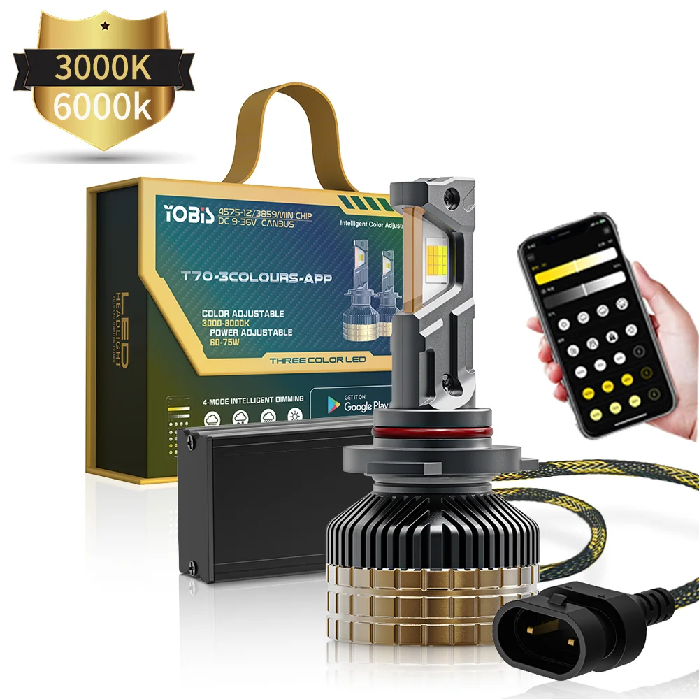 YOBIS Led Headlight Super Bright 15000Lm 150W 3 Color Light APP Control T70 Focos Kit Auto Accessories LED Car Light H4 H7 H11