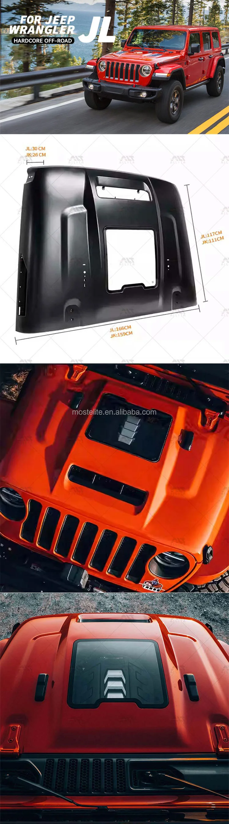 2025 New Design JL Sports Hood Engine Cover Modified Parts for Jeep Wrangler JL Accessories