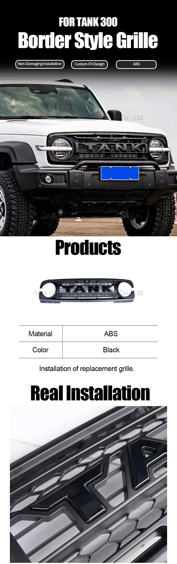 High Quality ABS Auto Parts Exterior Accessories Border Style Front Grille for GWM Tank 300