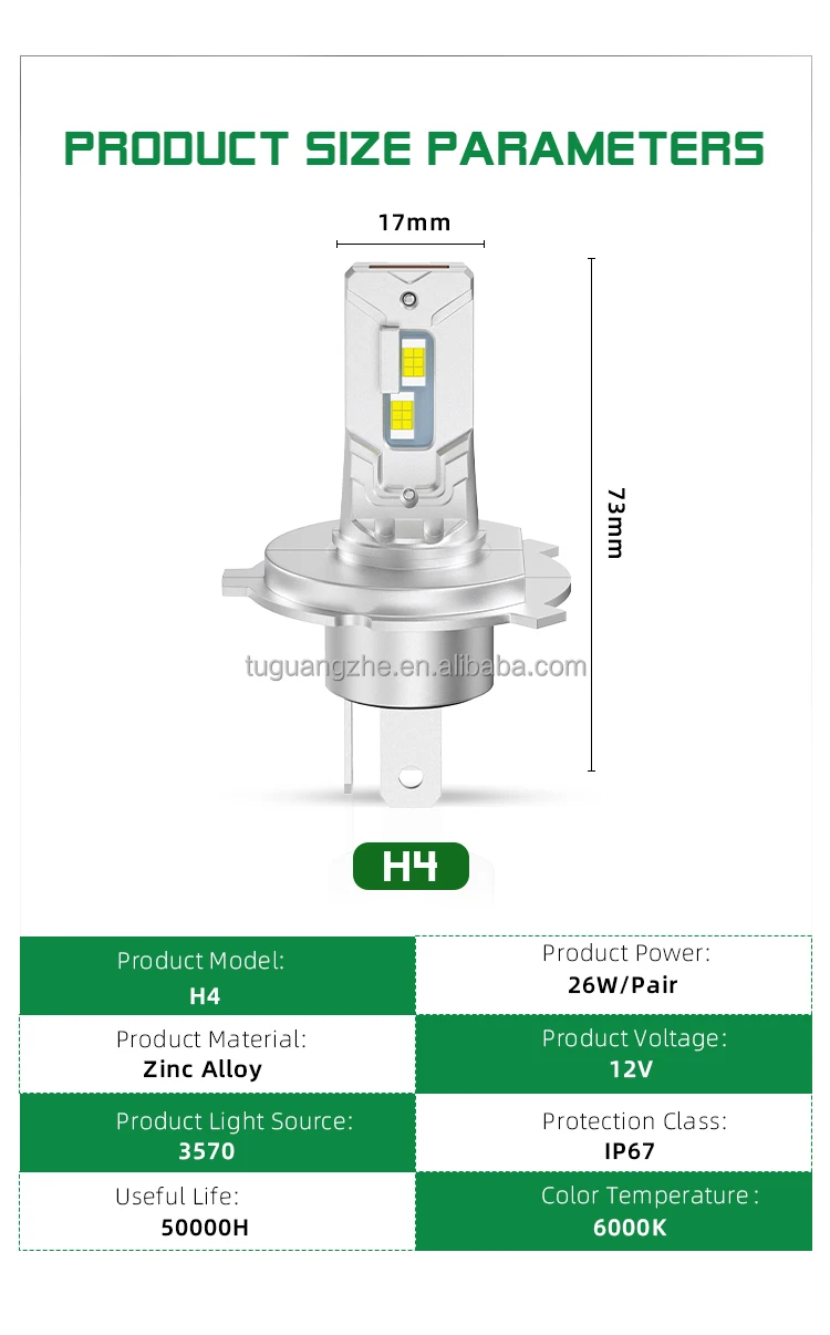 26W/Pair,H4,Car Front Headlights
