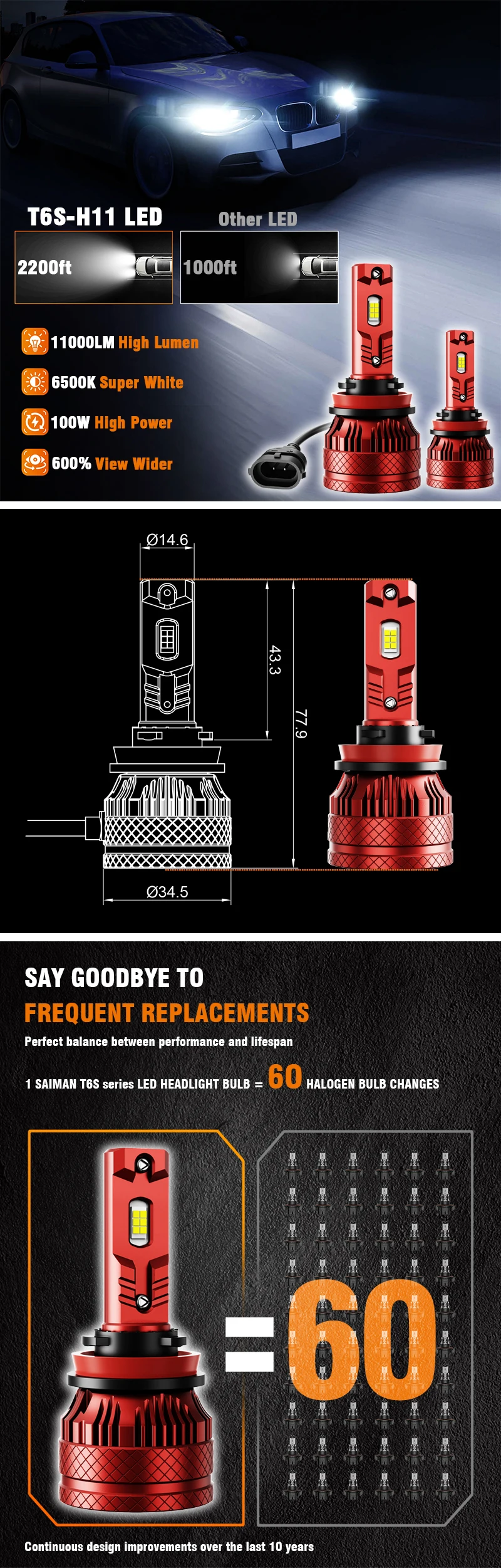 Universal Vehicle H11 LED headlight X2,100 Watts,T6S series, | T6S-H11 | CNY¥ 116.94 |