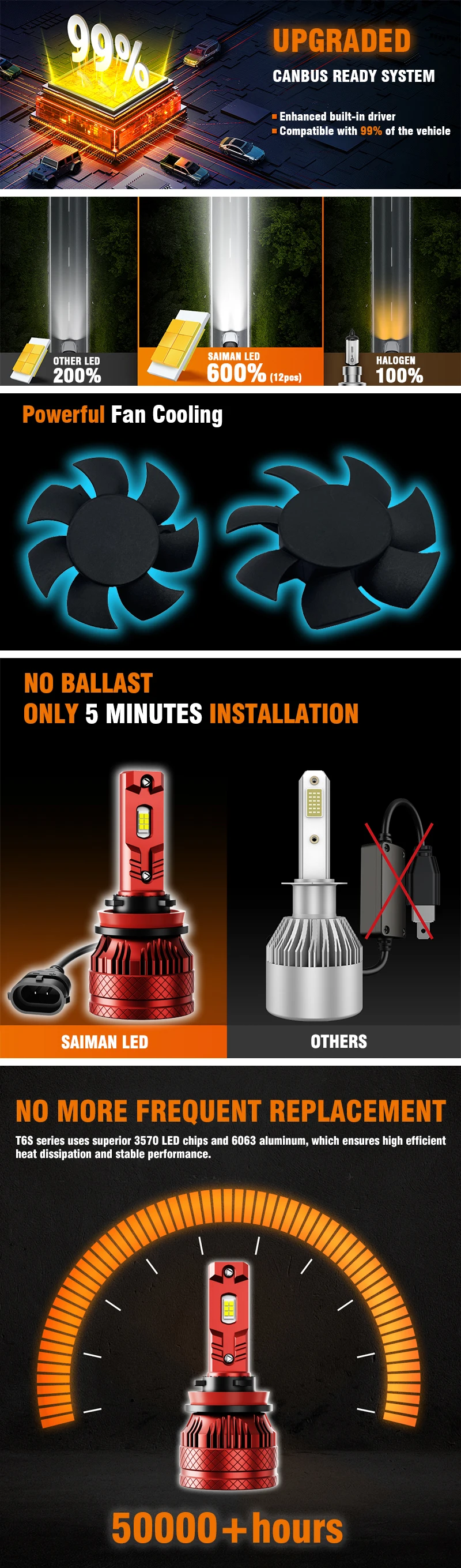 Universal Vehicle H11 LED headlight X2,100 Watts,T6S series, | T6S-9006 | CNY¥ 116.94 |