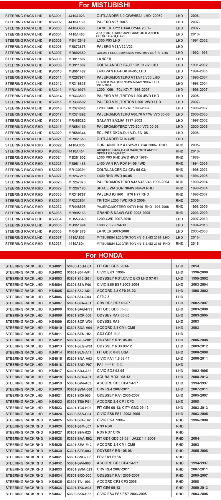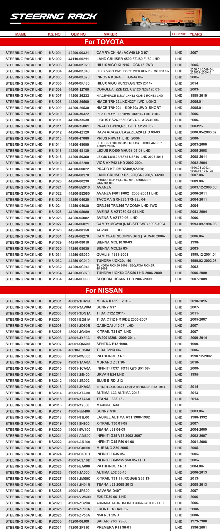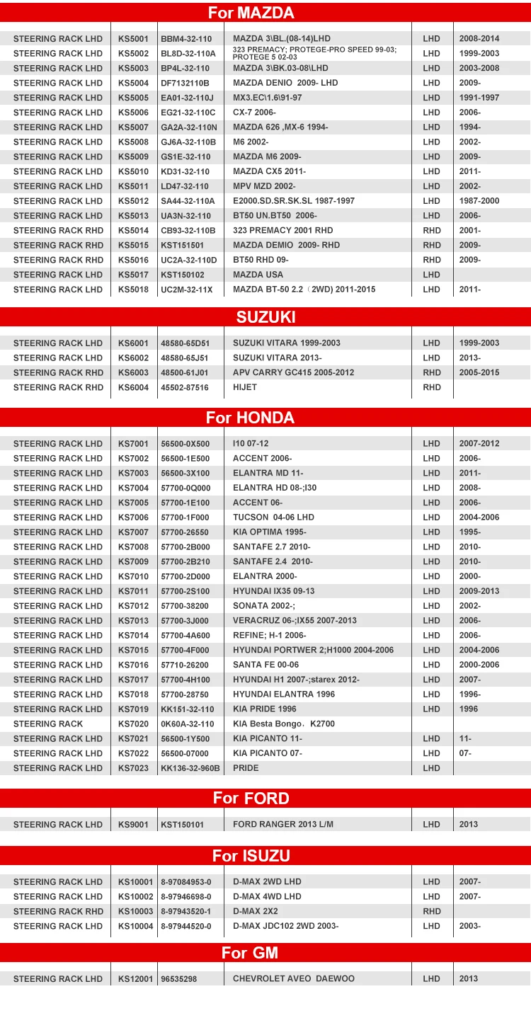 KINGSTEEL Auto Steering Gear Box Power Steering Rack for TOYOTA NISSAN HONDA MAZDA SUZUKI FORD MITSUBISHI HYUNDAI