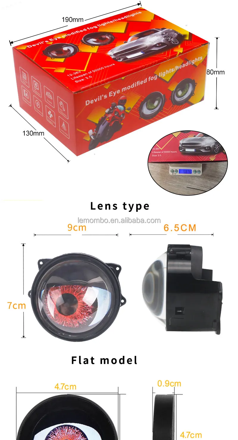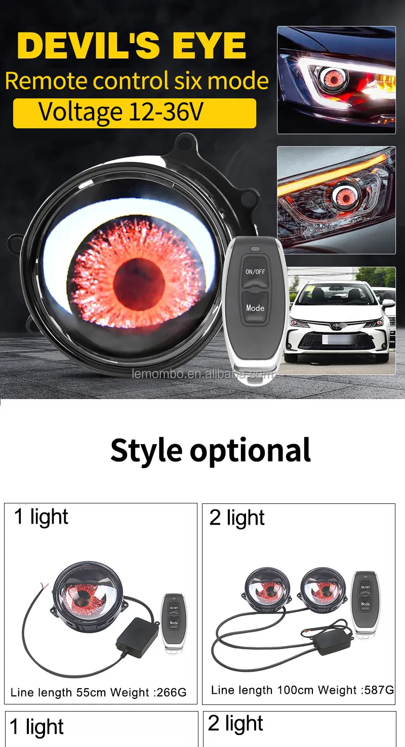 Dynamic 12V LED Auto Headlamp 3 Inch Devil Eye Lamp Demon Eyes New Waterproof Car Light Accessories 6000k Color Headlights
