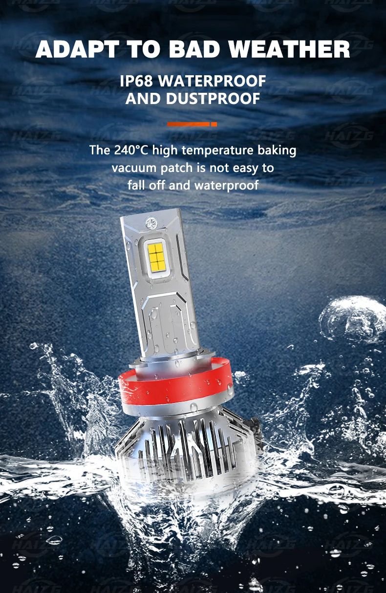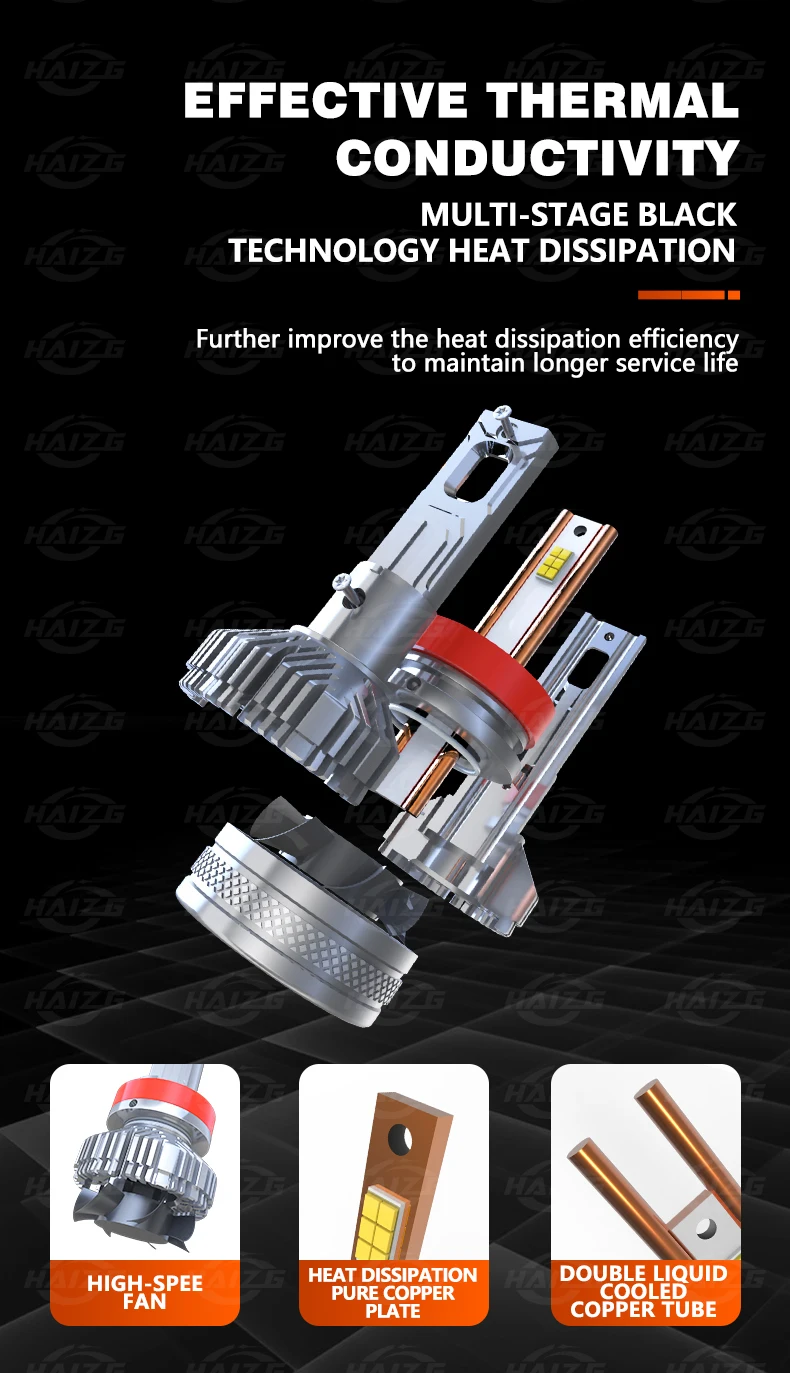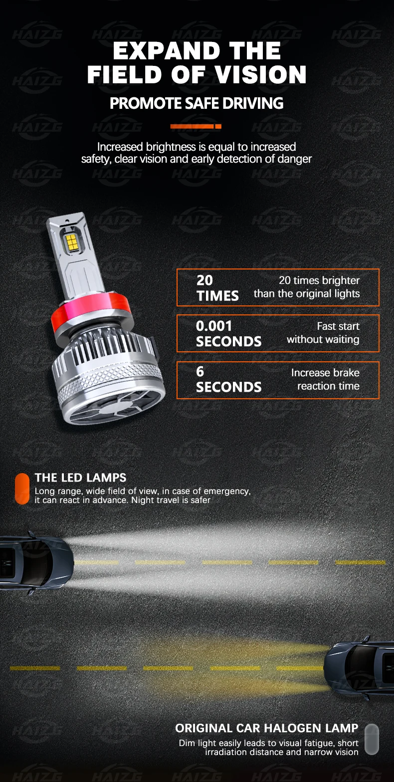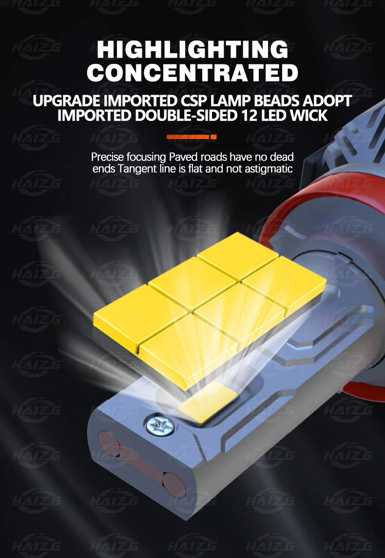 HAIZG Customized High Power Car Accessories 200W With Canbus H4 H7 9005 9006 Super Bright S13 40000LM LED Car Light