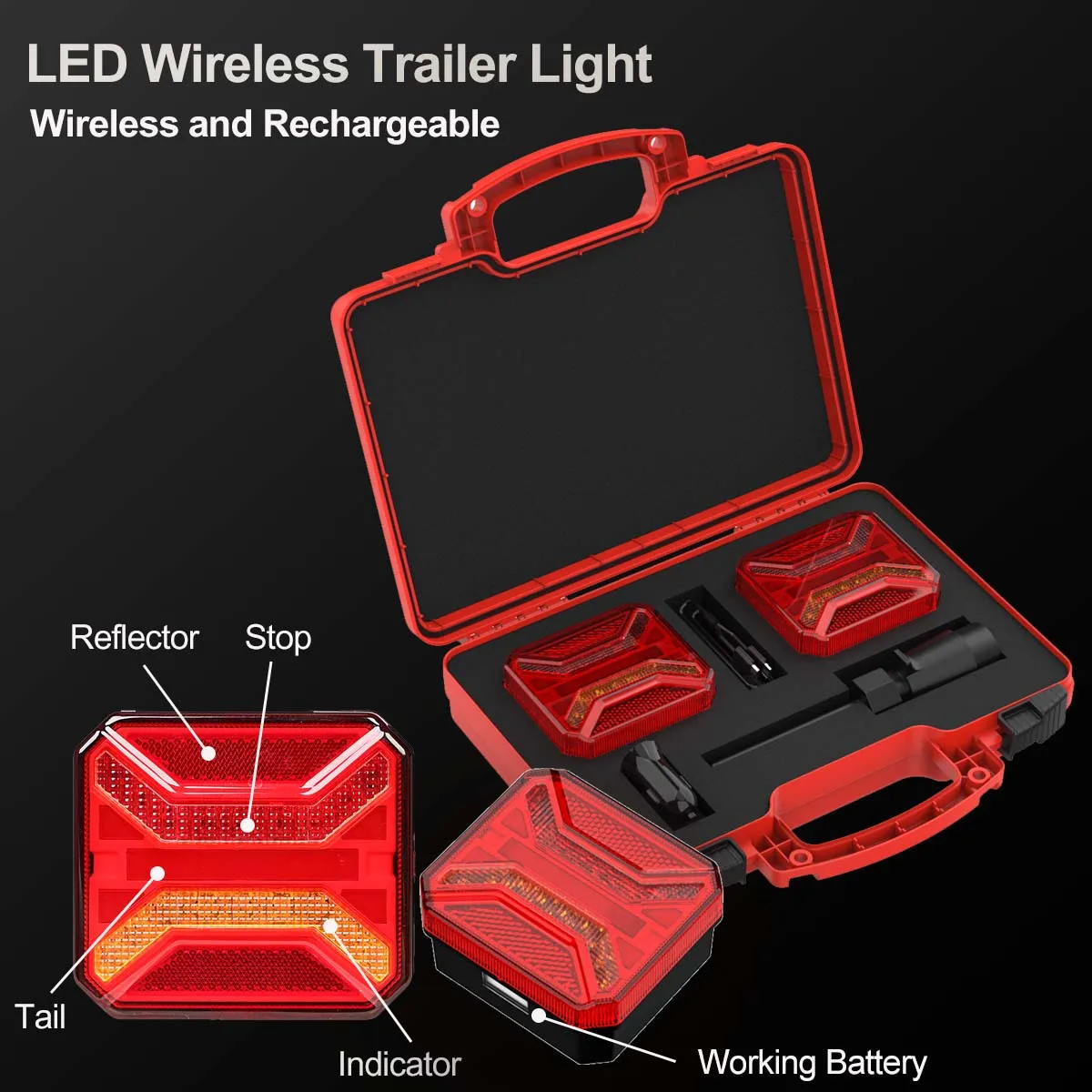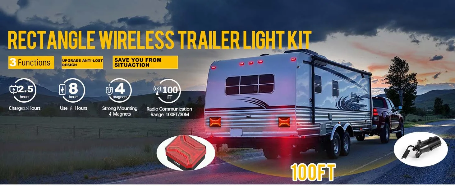 Wireless Magnetic LED Tail Light Kits for Truck Remote Controller Stop/Tail/Reverse Light Portable Tail Light