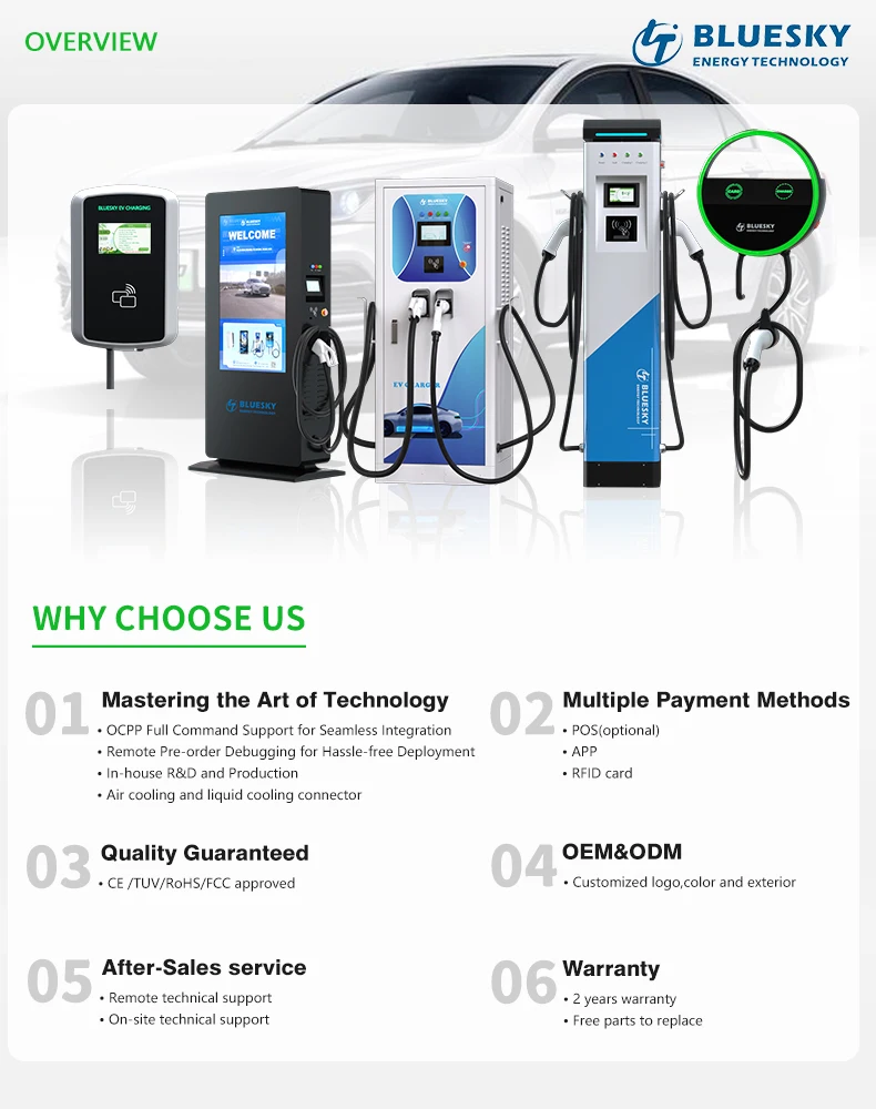 BLUESKY 43kw AC Commercial Public OCPP1.6 Compatible POS Charging Station Floor-Mounted for Tesla New Energy Ev Charging Station