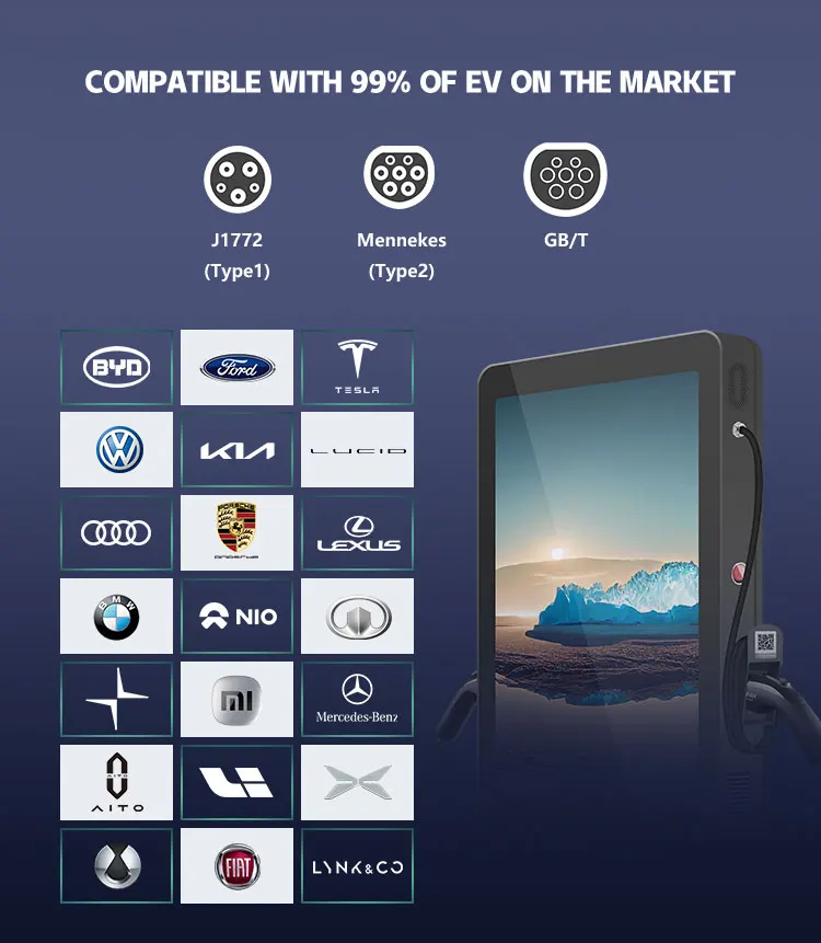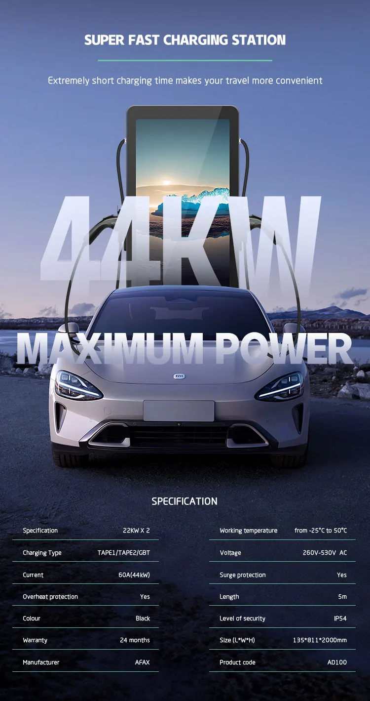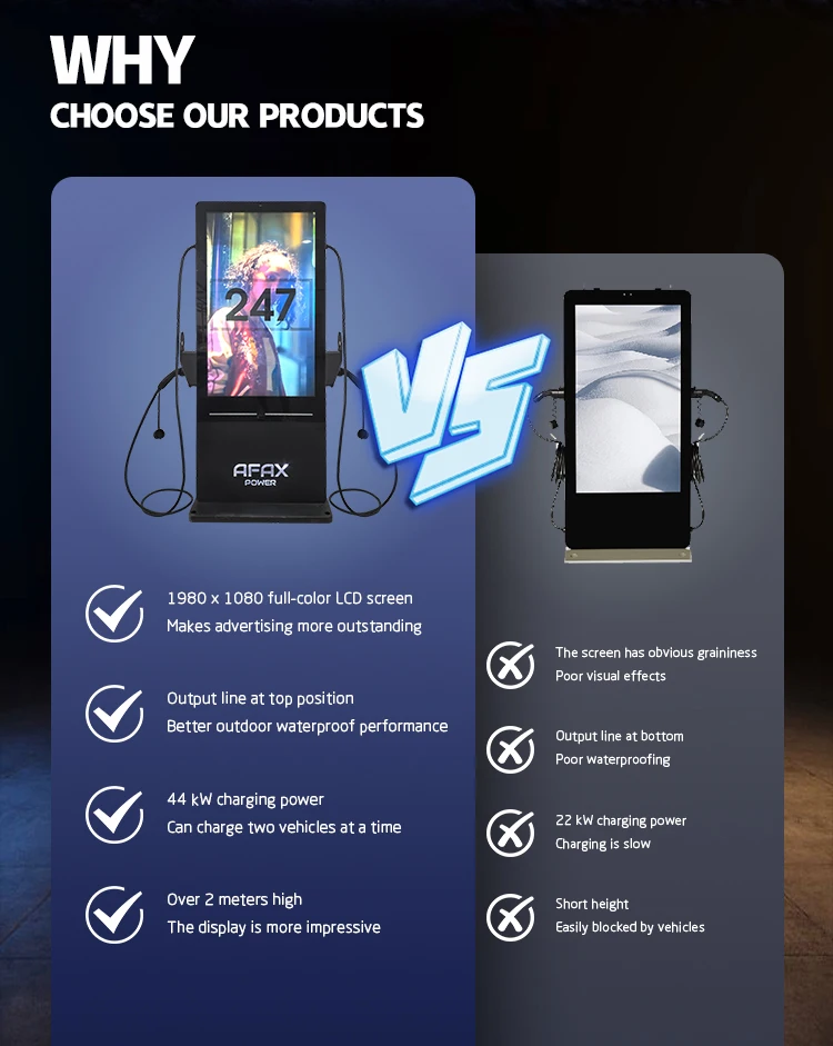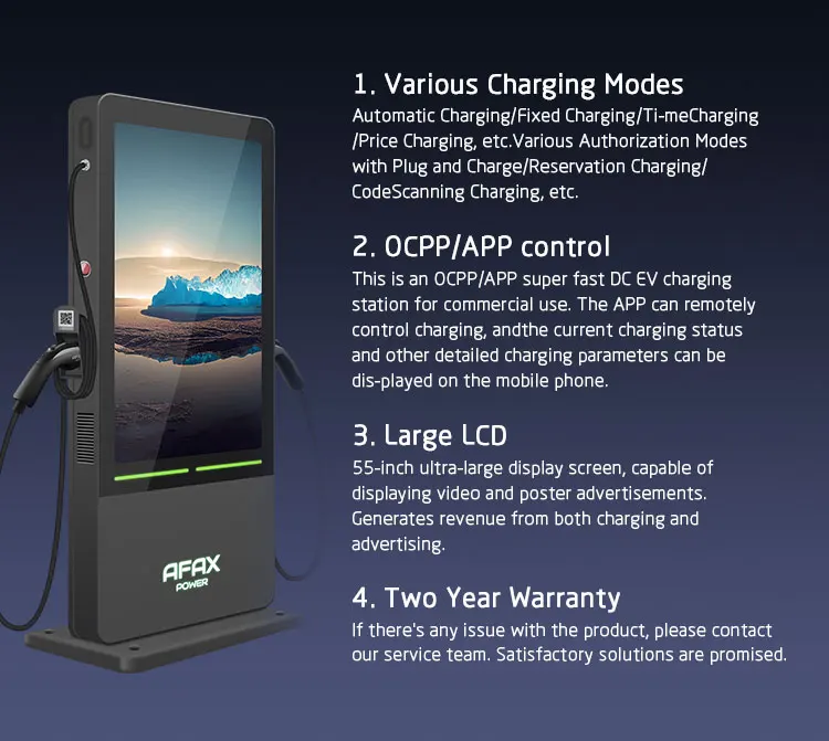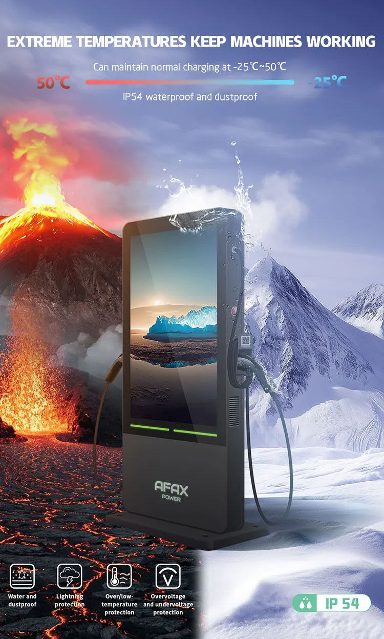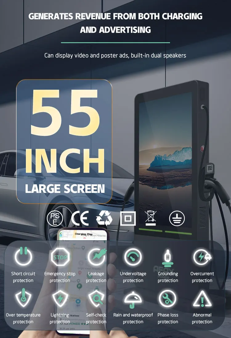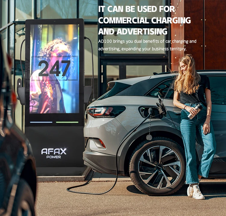 AFAX 55-Inch Advertising Screen Commercial Type2 EV Charger Ip54 Fast EV AC Charging Station for Electric Car